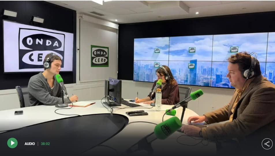 Los periodistas Erik Encinas y Joan Cascante debaten en Onda Cero sobre diversos temas como la gestión de la peste porcina y las huelgas de los funcionarios del sector sanitario y educativo.